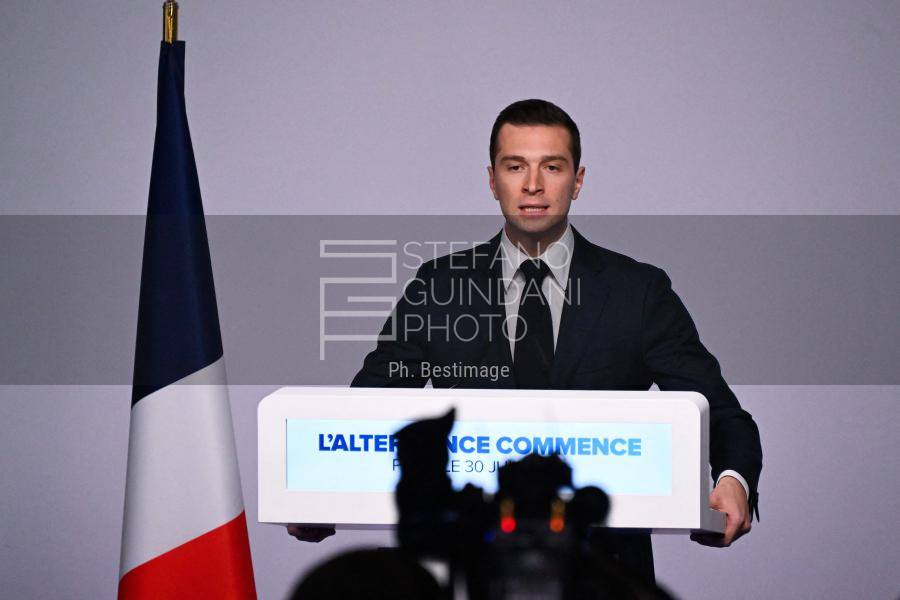 Jordan Bardella Durante Il Suo Discorso Dopo Il Primo Turno Delle Elezioni